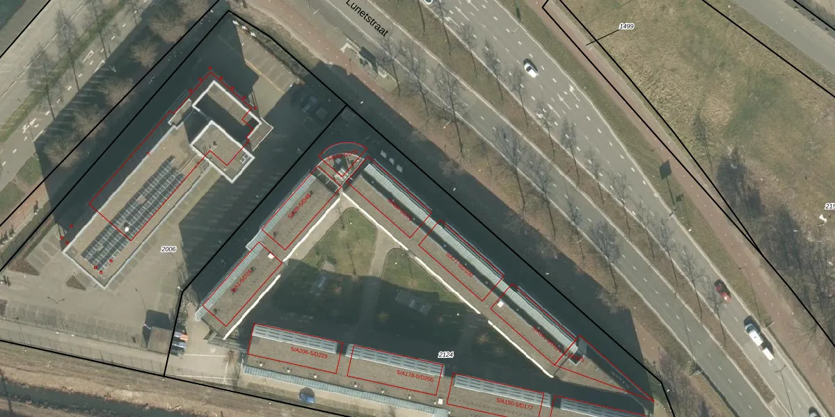 Het perceel waarop Rat Verleghstraat 5-A55 staat heeft een oppervlakte van 6960 m². Dit is een zeer groot perceel. De perceeloppervlakte wordt geregistreerd door het Kadaster. Gedetailleerde informatie over de maten van dit perceel kunt u vinden in het rapport Kadastrale kaart met maatvoering van Rat Verleghstraat 5-A55.