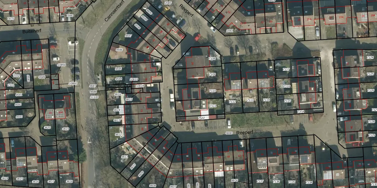 Gebruik de zoekbalk of klik op een perceel voor informatie over de adressen binnen dit perceel.