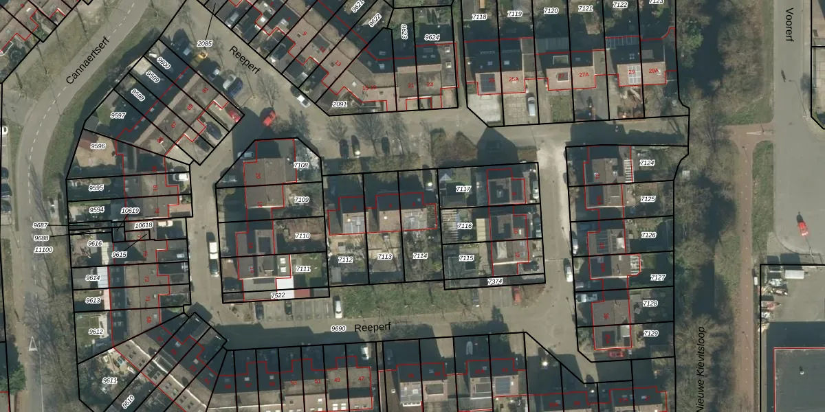 Gebruik de zoekbalk of klik op een perceel voor informatie over de adressen binnen dit perceel.
