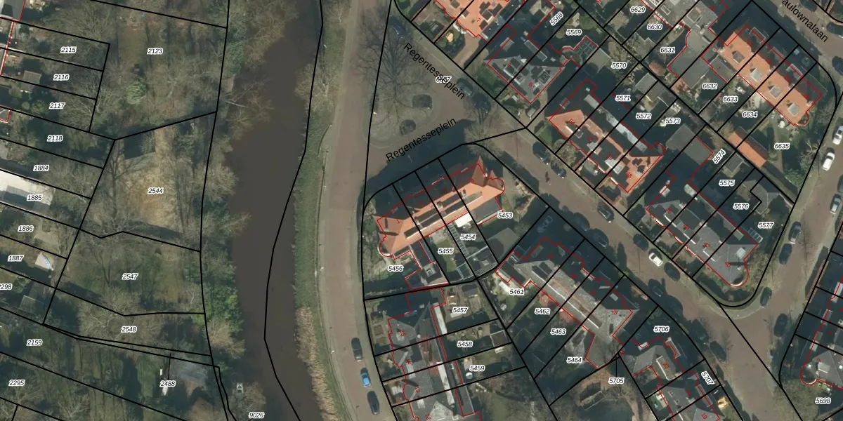 Regentesseplein 2 is gelegen op kadastraal perceel GNK02I5455. Deze kadastrale aanduiding is uniek en wordt gebruikt door het Kadaster om eigendomsrechten en andere zakelijke rechten vast te leggen. Het perceel maakt onderdeel uit van de kadastrale gemeente Ginneken.