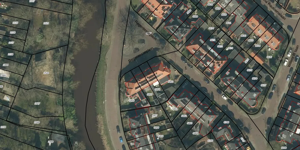 Regentesseplein 3 is gelegen op kadastraal perceel GNK02I5454. Deze kadastrale aanduiding is uniek en wordt gebruikt door het Kadaster om eigendomsrechten en andere zakelijke rechten vast te leggen. Het perceel maakt onderdeel uit van de kadastrale gemeente Ginneken.
