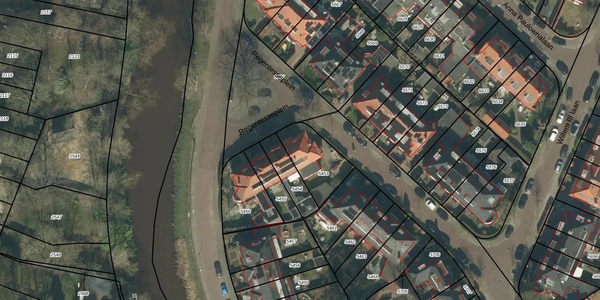 Het perceel waarop Regentesseplein 4 staat heeft een oppervlakte van 360 m². Dit is een groot perceel. De perceeloppervlakte wordt geregistreerd door het Kadaster. Gedetailleerde informatie over de maten van dit perceel kunt u vinden in het rapport Kadastrale kaart met maatvoering van Regentesseplein 4.