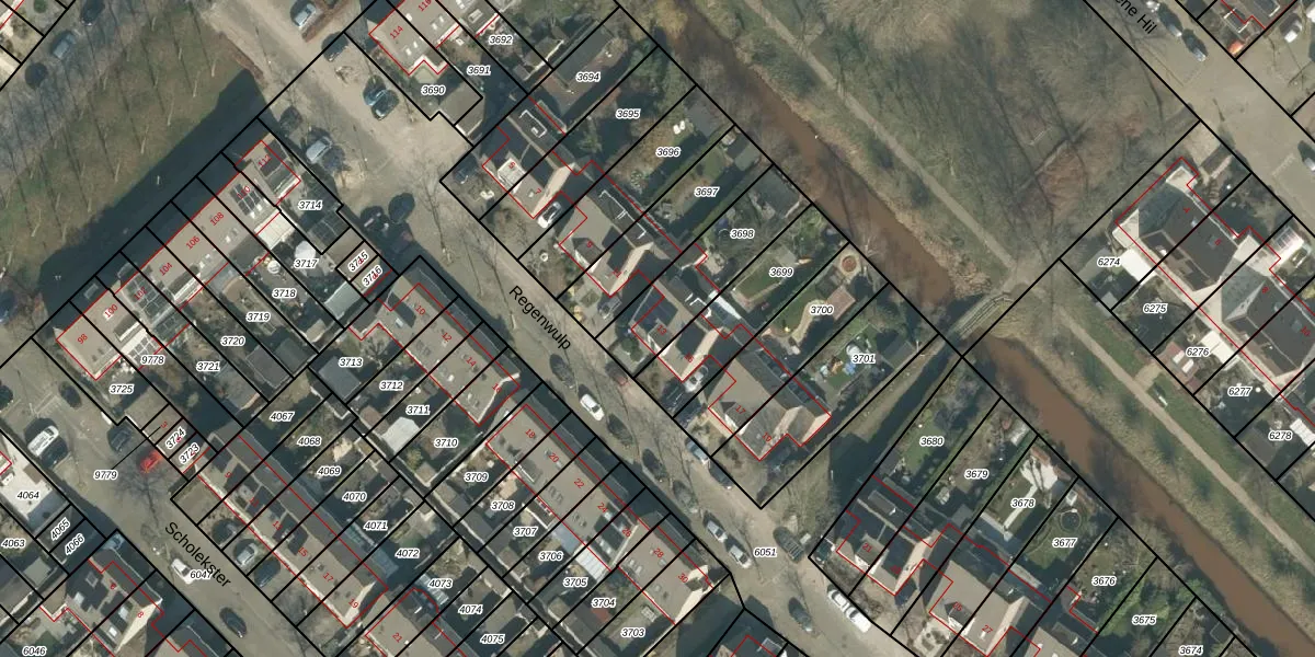 Het perceel waarop Regenwulp 13 staat heeft een oppervlakte van 319 m². Dit is een groot perceel. De perceeloppervlakte wordt geregistreerd door het Kadaster. Gedetailleerde informatie over de maten van dit perceel kunt u vinden in het rapport Kadastrale kaart met maatvoering van Regenwulp 13.