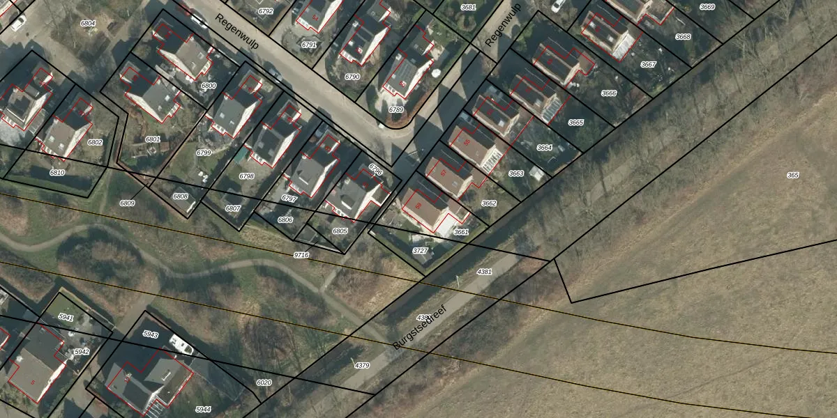 Het perceel waarop Regenwulp 59 staat heeft een oppervlakte van 243 m². Dit is een middelgroot perceel. De perceeloppervlakte wordt geregistreerd door het Kadaster. Gedetailleerde informatie over de maten van dit perceel kunt u vinden in het rapport Kadastrale kaart met maatvoering van Regenwulp 59.
