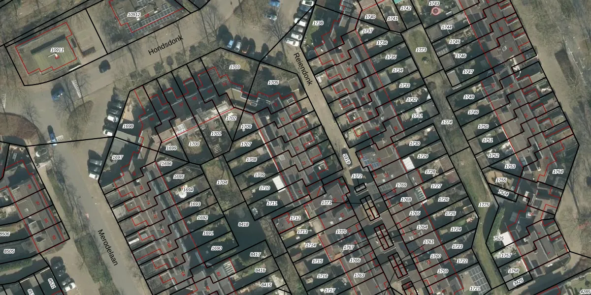 Gebruik de zoekbalk of klik op een perceel voor informatie over de adressen binnen dit perceel.