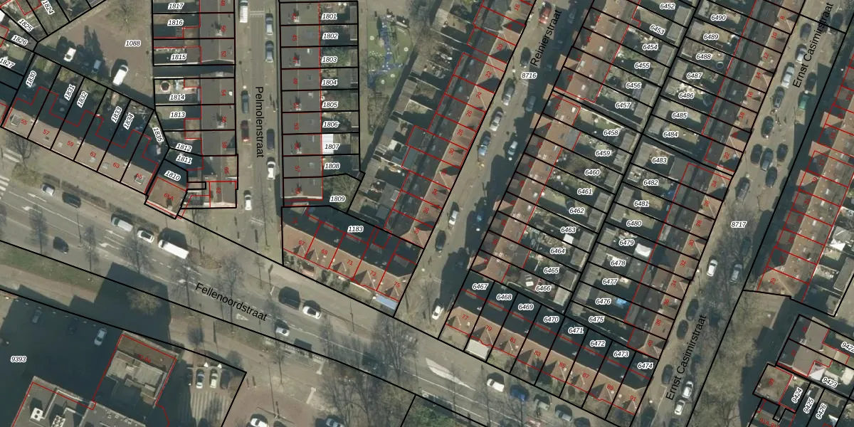 Het perceel waarop Reinierstraat 36 staat heeft een oppervlakte van 2785 m². Dit is een zeer groot perceel. De perceeloppervlakte wordt geregistreerd door het Kadaster. Gedetailleerde informatie over de maten van dit perceel kunt u vinden in het rapport Kadastrale kaart met maatvoering van Reinierstraat 36.