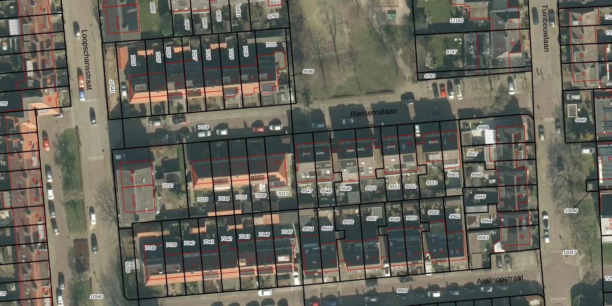Rietsemalaan 12 is gelegen op kadastraal perceel BDA00D9547. Deze kadastrale aanduiding is uniek en wordt gebruikt door het Kadaster om eigendomsrechten en andere zakelijke rechten vast te leggen. Het perceel maakt onderdeel uit van de kadastrale gemeente Breda.