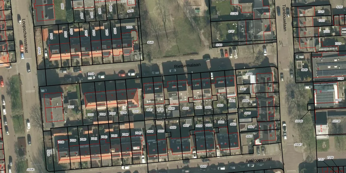 Gebruik de zoekbalk of klik op een perceel voor informatie over de adressen binnen dit perceel.