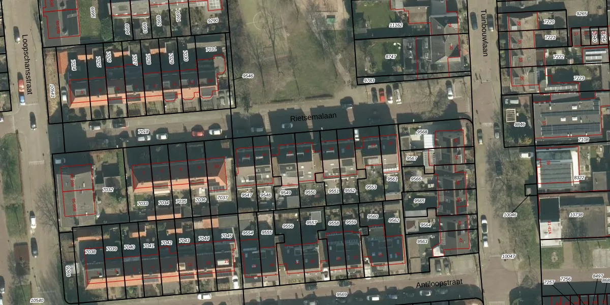 Rietsemalaan 18 is gelegen op kadastraal perceel BDA00D9550. Deze kadastrale aanduiding is uniek en wordt gebruikt door het Kadaster om eigendomsrechten en andere zakelijke rechten vast te leggen. Het perceel maakt onderdeel uit van de kadastrale gemeente Breda.