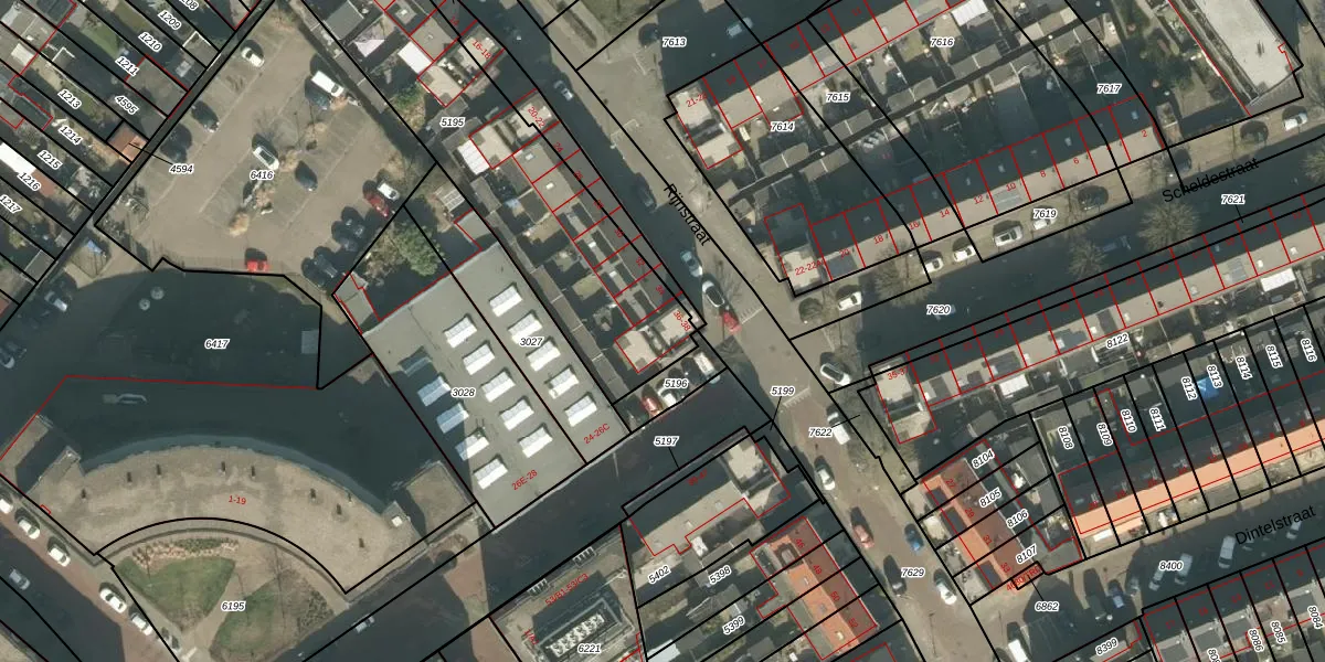 Rijnstraat 38 is gelegen op kadastraal perceel PCH00I5195. Deze kadastrale aanduiding is uniek en wordt gebruikt door het Kadaster om eigendomsrechten en andere zakelijke rechten vast te leggen. Het perceel maakt onderdeel uit van de kadastrale gemeente Princenhage.