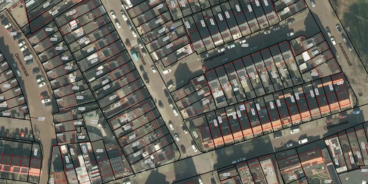 Gebruik de zoekbalk of klik op een perceel voor informatie over de adressen binnen dit perceel.