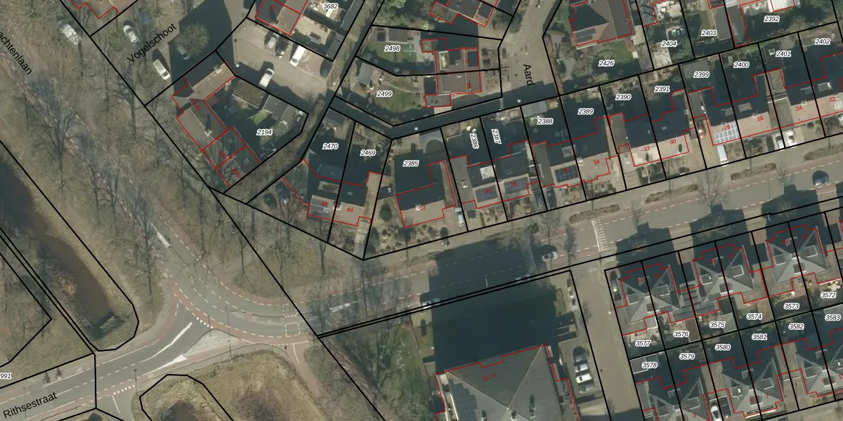Rithsestraat 42 is gelegen op kadastraal perceel PCH00N2385. Deze kadastrale aanduiding is uniek en wordt gebruikt door het Kadaster om eigendomsrechten en andere zakelijke rechten vast te leggen. Het perceel maakt onderdeel uit van de kadastrale gemeente Princenhage.