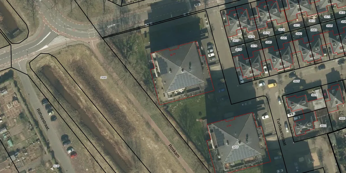 Rithsestraat 63 is gelegen op kadastraal perceel PCH00N3455. Deze kadastrale aanduiding is uniek en wordt gebruikt door het Kadaster om eigendomsrechten en andere zakelijke rechten vast te leggen. Het perceel maakt onderdeel uit van de kadastrale gemeente Princenhage.