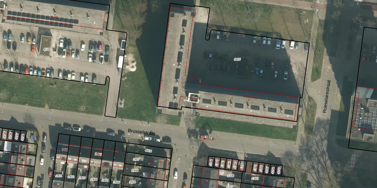 Roeselarestraat 185 is gelegen op kadastraal perceel BDA00G6805. Deze kadastrale aanduiding is uniek en wordt gebruikt door het Kadaster om eigendomsrechten en andere zakelijke rechten vast te leggen. Het perceel maakt onderdeel uit van de kadastrale gemeente Breda.