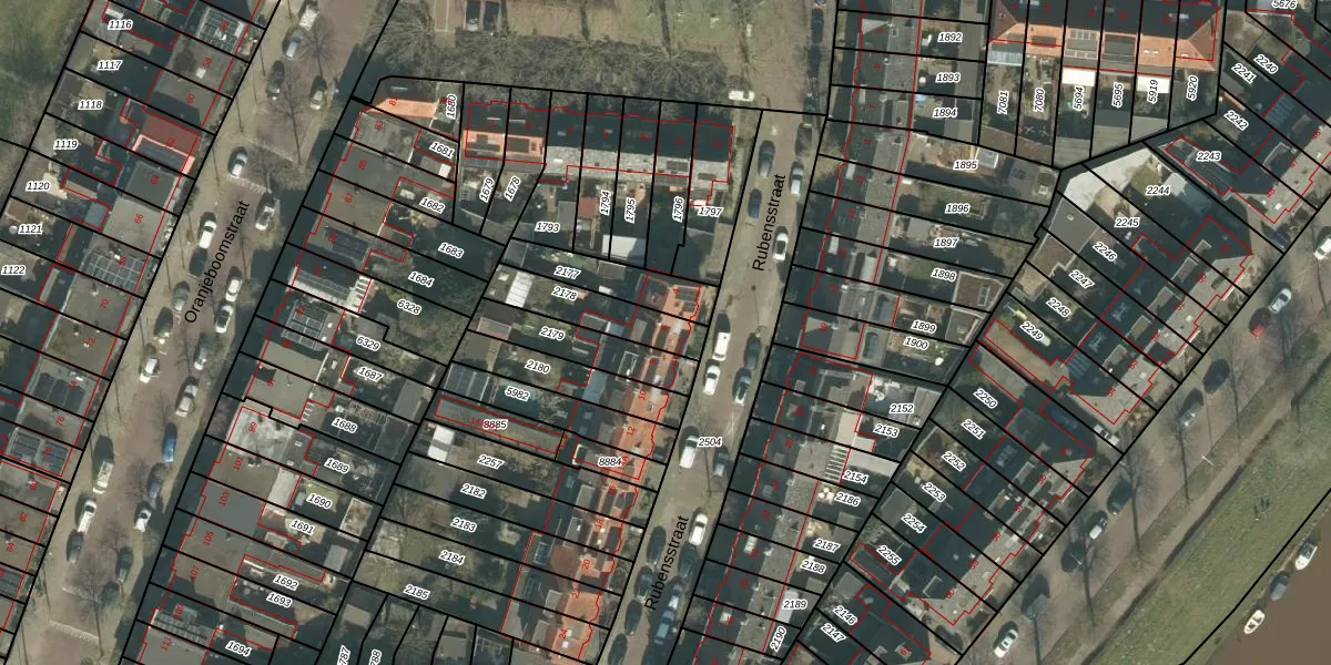 Het perceel waarop Rubensstraat 6 staat heeft een oppervlakte van 182 m². Dit is een middelgroot perceel. De perceeloppervlakte wordt geregistreerd door het Kadaster. Gedetailleerde informatie over de maten van dit perceel kunt u vinden in het rapport Kadastrale kaart met maatvoering van Rubensstraat 6.