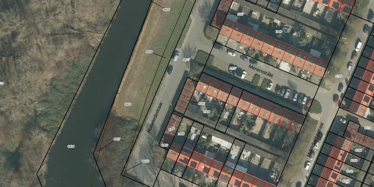 Ruiseledestraat 20 is gelegen op kadastraal perceel BDA00G6165. Deze kadastrale aanduiding is uniek en wordt gebruikt door het Kadaster om eigendomsrechten en andere zakelijke rechten vast te leggen. Het perceel maakt onderdeel uit van de kadastrale gemeente Breda.