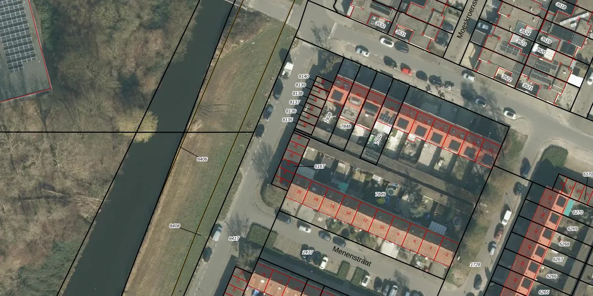 Het perceel waarop Ruiseledestraat 34 staat heeft een oppervlakte van 114 m². Dit is een middelgroot perceel. De perceeloppervlakte wordt geregistreerd door het Kadaster. Gedetailleerde informatie over de maten van dit perceel kunt u vinden in het rapport Kadastrale kaart met maatvoering van Ruiseledestraat 34.