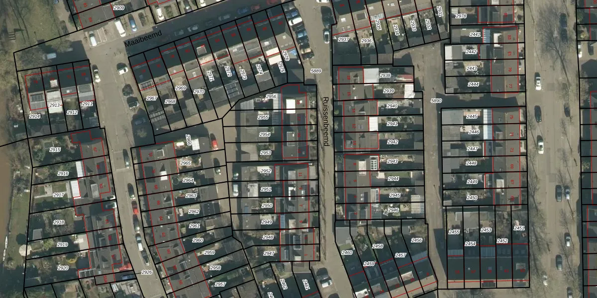 Ruissenbeemd 13 is gelegen op kadastraal perceel BDA00H2953. Deze kadastrale aanduiding is uniek en wordt gebruikt door het Kadaster om eigendomsrechten en andere zakelijke rechten vast te leggen. Het perceel maakt onderdeel uit van de kadastrale gemeente Breda.