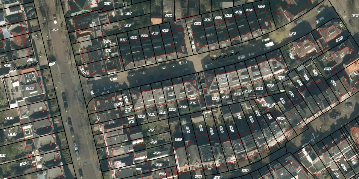 Rustlandstraat 12 is gelegen op kadastraal perceel BDA00D5442. Deze kadastrale aanduiding is uniek en wordt gebruikt door het Kadaster om eigendomsrechten en andere zakelijke rechten vast te leggen. Het perceel maakt onderdeel uit van de kadastrale gemeente Breda.