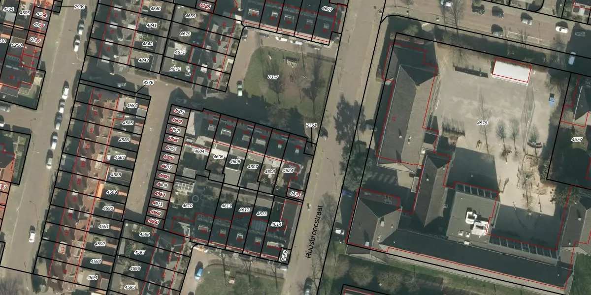 Het perceel waarop Ruusbroecstraat 108 staat heeft een oppervlakte van 182 m². Dit is een middelgroot perceel. De perceeloppervlakte wordt geregistreerd door het Kadaster. Gedetailleerde informatie over de maten van dit perceel kunt u vinden in het rapport Kadastrale kaart met maatvoering van Ruusbroecstraat 108.