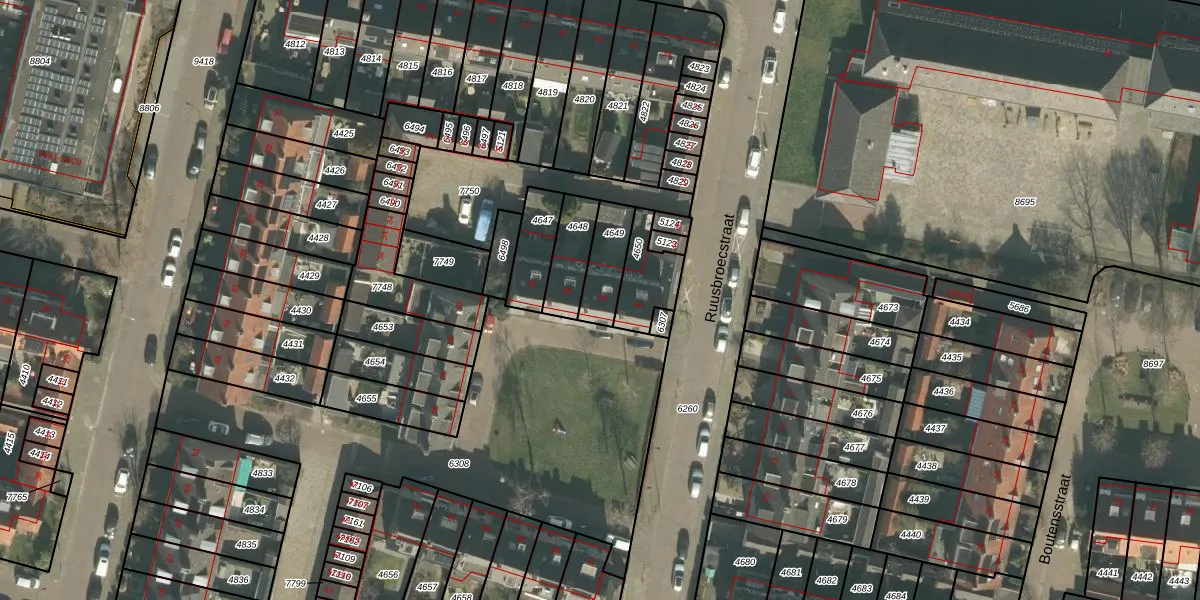 Het perceel waarop Ruusbroecstraat 46 staat heeft een oppervlakte van 123 m². Dit is een middelgroot perceel. De perceeloppervlakte wordt geregistreerd door het Kadaster. Gedetailleerde informatie over de maten van dit perceel kunt u vinden in het rapport Kadastrale kaart met maatvoering van Ruusbroecstraat 46.