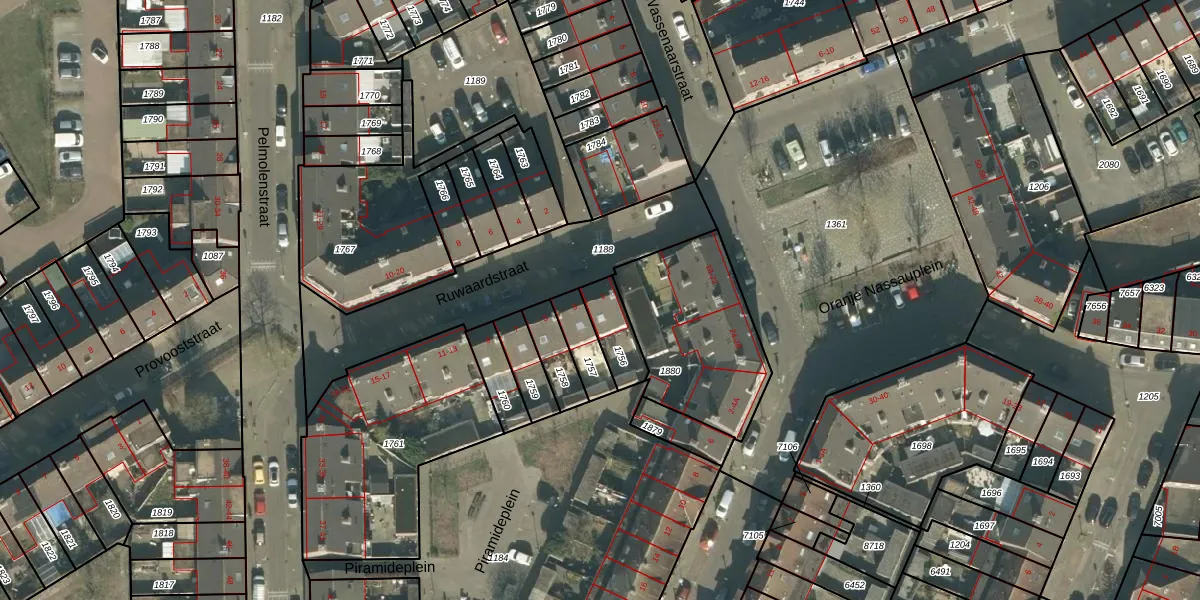 Gebruik de zoekbalk of klik op een perceel voor informatie over de adressen binnen dit perceel.