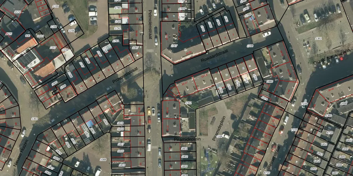 Het perceel waarop Ruwaardstraat 19 staat heeft een oppervlakte van 835 m². Dit is een groot perceel. De perceeloppervlakte wordt geregistreerd door het Kadaster. Gedetailleerde informatie over de maten van dit perceel kunt u vinden in het rapport Kadastrale kaart met maatvoering van Ruwaardstraat 19.