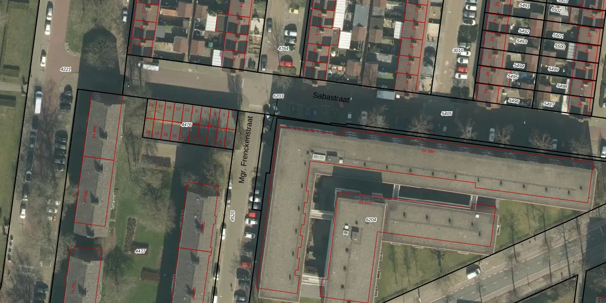 Sabastraat 135 is gelegen op kadastraal perceel PCH00I6204. Deze kadastrale aanduiding is uniek en wordt gebruikt door het Kadaster om eigendomsrechten en andere zakelijke rechten vast te leggen. Het perceel maakt onderdeel uit van de kadastrale gemeente Princenhage.