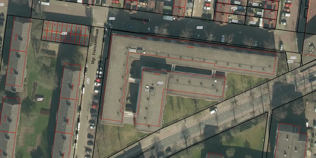 Sabastraat 155 is gelegen op kadastraal perceel PCH00I6204. Deze kadastrale aanduiding is uniek en wordt gebruikt door het Kadaster om eigendomsrechten en andere zakelijke rechten vast te leggen. Het perceel maakt onderdeel uit van de kadastrale gemeente Princenhage.