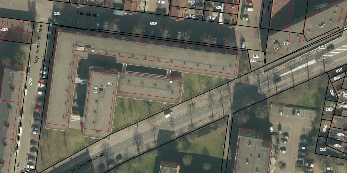 Sabastraat 165 is gelegen op kadastraal perceel PCH00I6204. Deze kadastrale aanduiding is uniek en wordt gebruikt door het Kadaster om eigendomsrechten en andere zakelijke rechten vast te leggen. Het perceel maakt onderdeel uit van de kadastrale gemeente Princenhage.
