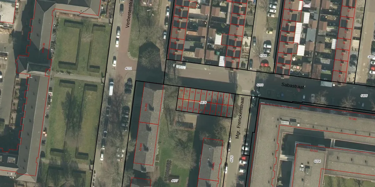 Het adres is gelegen op perceel 4476 in de sectie I en de kadastrale gemeente Princenhage. De kadastrale aanduiding is aldus PCH00-I-4476. De gemiddelde perceelgrootte in Princenhage is 2923,92 m². Dit perceel is kleiner: de perceeloppervlakte bedraagt 389 m². Het grootste perceel in de kadastrale gemeente is 31,9 ha. Het kleinste perceel heeft een oppervlakte van 0 m². Er zijn 20 adressen aanwezig op het perceel. De huidige grenzen van het perceel zijn digitaal in de Basisregistratie Kadaster (BRK) geregistreerd op 10-10-2006.