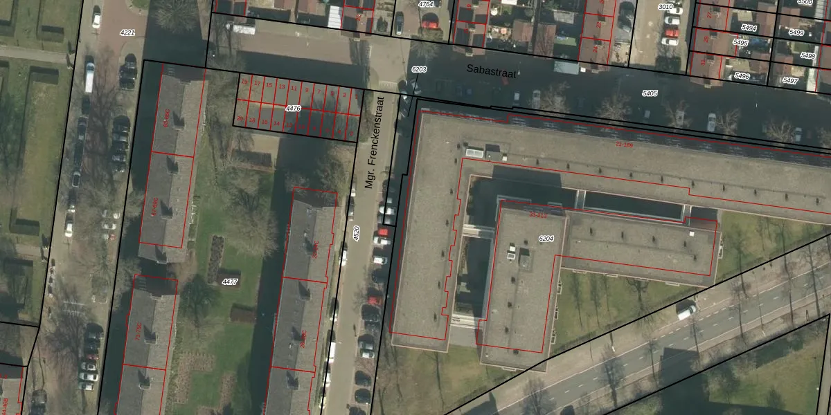 Sabastraat 25 is gelegen op kadastraal perceel PCH00I6204. Deze kadastrale aanduiding is uniek en wordt gebruikt door het Kadaster om eigendomsrechten en andere zakelijke rechten vast te leggen. Het perceel maakt onderdeel uit van de kadastrale gemeente Princenhage.