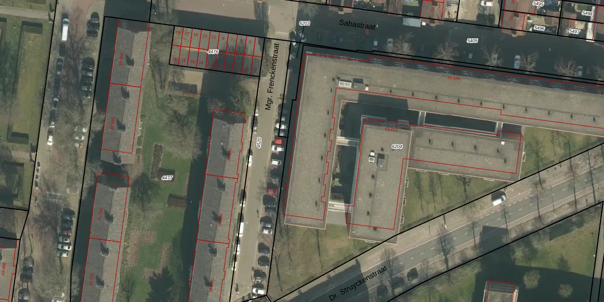 Sabastraat 27 is gelegen op kadastraal perceel PCH00I6204. Deze kadastrale aanduiding is uniek en wordt gebruikt door het Kadaster om eigendomsrechten en andere zakelijke rechten vast te leggen. Het perceel maakt onderdeel uit van de kadastrale gemeente Princenhage.