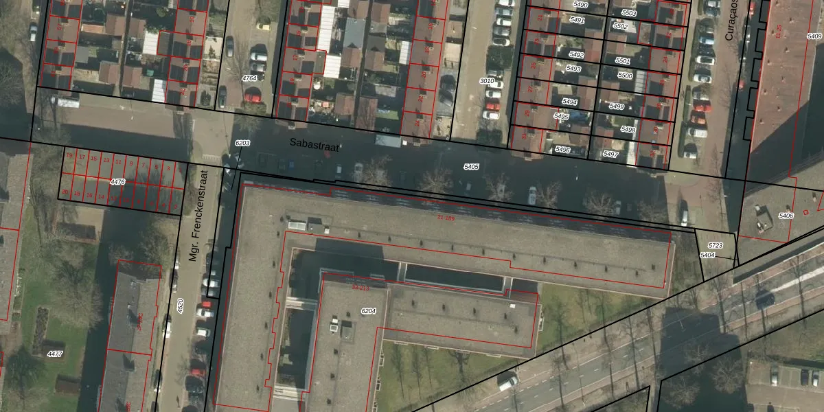 Sabastraat 65 is gelegen op kadastraal perceel PCH00I6204. Deze kadastrale aanduiding is uniek en wordt gebruikt door het Kadaster om eigendomsrechten en andere zakelijke rechten vast te leggen. Het perceel maakt onderdeel uit van de kadastrale gemeente Princenhage.