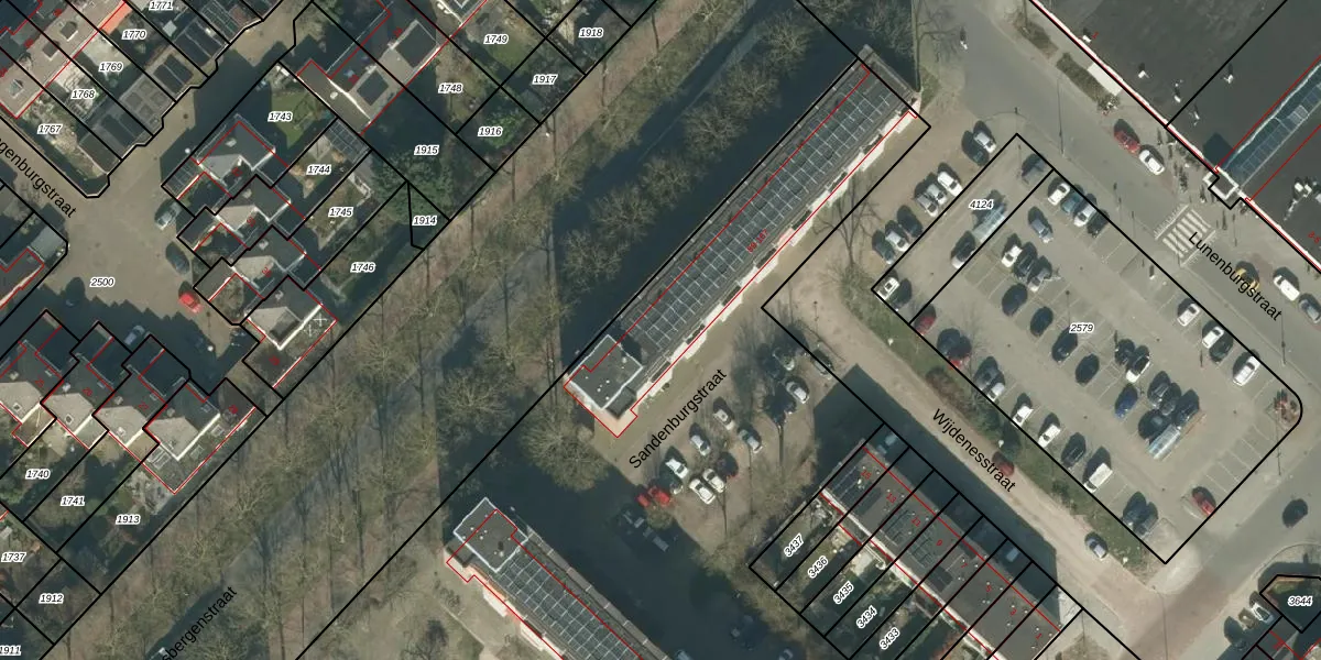 Het perceel waarop Sandenburgstraat 105 staat heeft een oppervlakte van 1,2 ha. Dit is een zeer groot perceel. De perceeloppervlakte wordt geregistreerd door het Kadaster. Gedetailleerde informatie over de maten van dit perceel kunt u vinden in het rapport Kadastrale kaart met maatvoering van Sandenburgstraat 105.