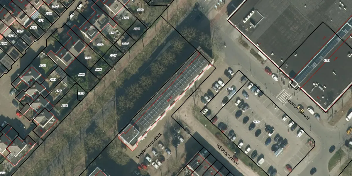 Het perceel waarop Sandenburgstraat 141 staat heeft een oppervlakte van 1,2 ha. Dit is een zeer groot perceel. De perceeloppervlakte wordt geregistreerd door het Kadaster. Gedetailleerde informatie over de maten van dit perceel kunt u vinden in het rapport Kadastrale kaart met maatvoering van Sandenburgstraat 141.