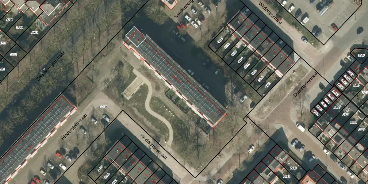 Het perceel waarop Sandenburgstraat 33 staat heeft een oppervlakte van 1,2 ha. Dit is een zeer groot perceel. De perceeloppervlakte wordt geregistreerd door het Kadaster. Gedetailleerde informatie over de maten van dit perceel kunt u vinden in het rapport Kadastrale kaart met maatvoering van Sandenburgstraat 33.