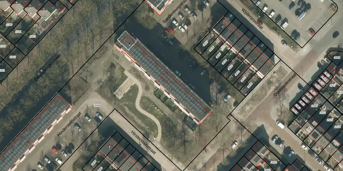 Het perceel waarop Sandenburgstraat 35 staat heeft een oppervlakte van 1,2 ha. Dit is een zeer groot perceel. De perceeloppervlakte wordt geregistreerd door het Kadaster. Gedetailleerde informatie over de maten van dit perceel kunt u vinden in het rapport Kadastrale kaart met maatvoering van Sandenburgstraat 35.
