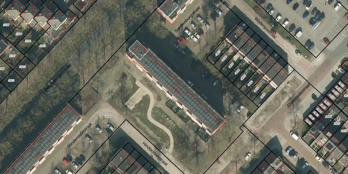 Het perceel waarop Sandenburgstraat 47 staat heeft een oppervlakte van 1,2 ha. Dit is een zeer groot perceel. De perceeloppervlakte wordt geregistreerd door het Kadaster. Gedetailleerde informatie over de maten van dit perceel kunt u vinden in het rapport Kadastrale kaart met maatvoering van Sandenburgstraat 47.