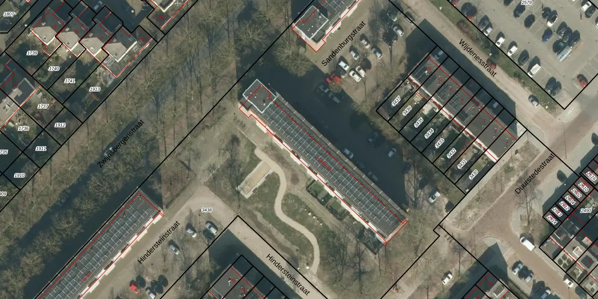 Het perceel waarop Sandenburgstraat 61 staat heeft een oppervlakte van 1,2 ha. Dit is een zeer groot perceel. De perceeloppervlakte wordt geregistreerd door het Kadaster. Gedetailleerde informatie over de maten van dit perceel kunt u vinden in het rapport Kadastrale kaart met maatvoering van Sandenburgstraat 61.