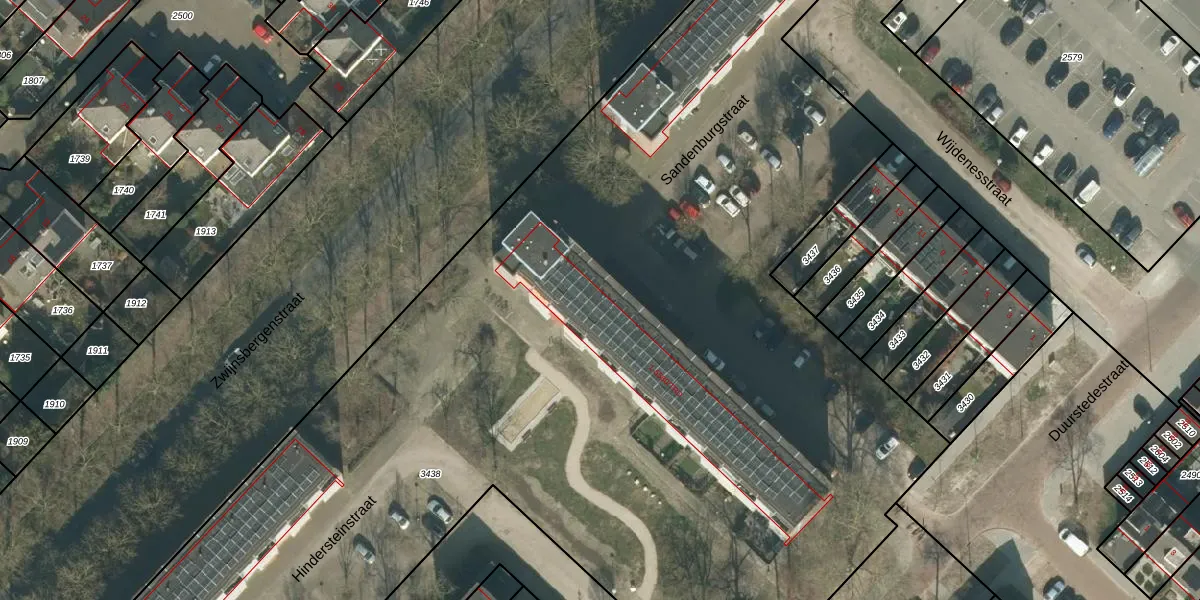 Het perceel waarop Sandenburgstraat 909 staat heeft een oppervlakte van 1,2 ha. Dit is een zeer groot perceel. De perceeloppervlakte wordt geregistreerd door het Kadaster. Gedetailleerde informatie over de maten van dit perceel kunt u vinden in het rapport Kadastrale kaart met maatvoering van Sandenburgstraat 909.