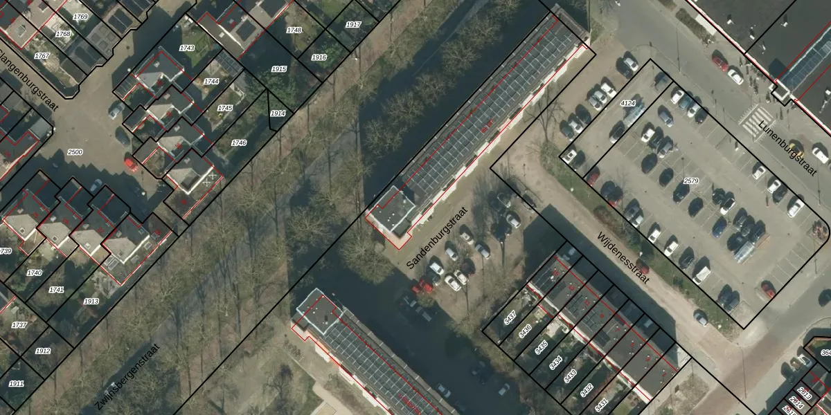 Het perceel waarop Sandenburgstraat 95 staat heeft een oppervlakte van 1,2 ha. Dit is een zeer groot perceel. De perceeloppervlakte wordt geregistreerd door het Kadaster. Gedetailleerde informatie over de maten van dit perceel kunt u vinden in het rapport Kadastrale kaart met maatvoering van Sandenburgstraat 95.
