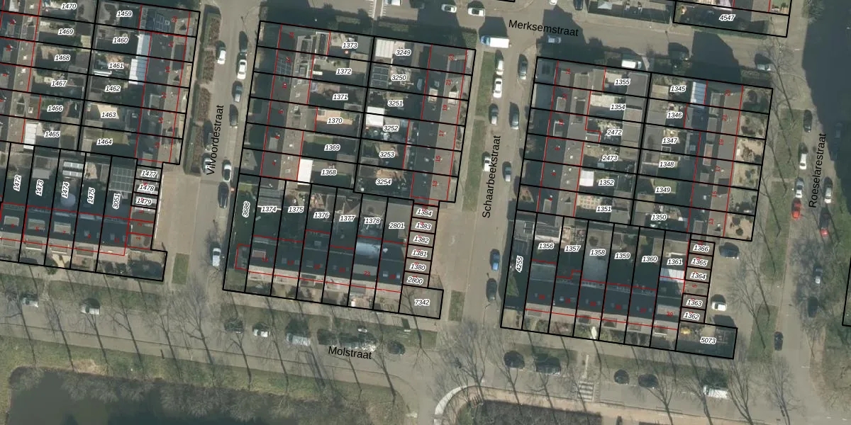 Gebruik de zoekbalk of klik op een perceel voor informatie over de adressen binnen dit perceel.