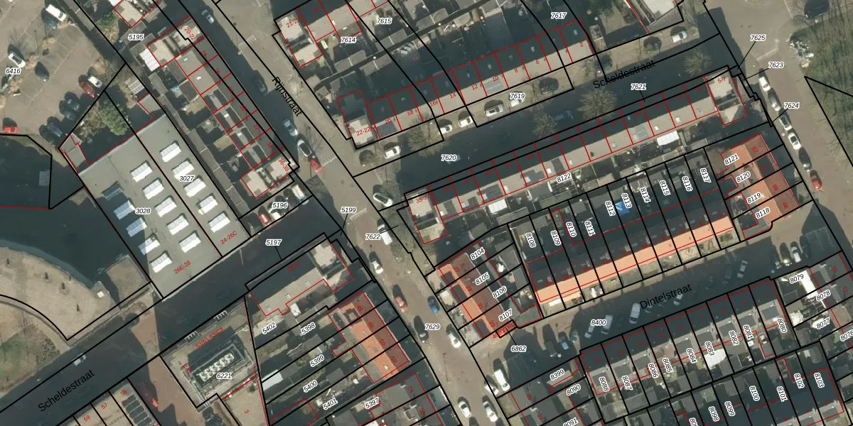 Het perceel waarop Scheldestraat 37 staat heeft een oppervlakte van 1202 m². Dit is een zeer groot perceel. De perceeloppervlakte wordt geregistreerd door het Kadaster. Gedetailleerde informatie over de maten van dit perceel kunt u vinden in het rapport Kadastrale kaart met maatvoering van Scheldestraat 37.