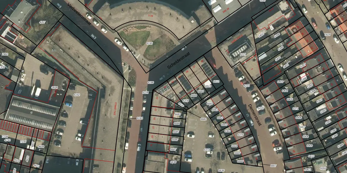 Het perceel waarop Scheldestraat 63 staat heeft een oppervlakte van 103 m². Dit is een middelgroot perceel. De perceeloppervlakte wordt geregistreerd door het Kadaster. Gedetailleerde informatie over de maten van dit perceel kunt u vinden in het rapport Kadastrale kaart met maatvoering van Scheldestraat 63.