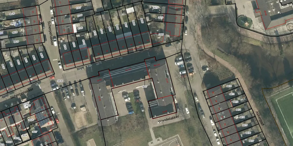 Scherpenakker 112 is gelegen op kadastraal perceel BDA00H9837. Deze kadastrale aanduiding is uniek en wordt gebruikt door het Kadaster om eigendomsrechten en andere zakelijke rechten vast te leggen. Het perceel maakt onderdeel uit van de kadastrale gemeente Breda.
