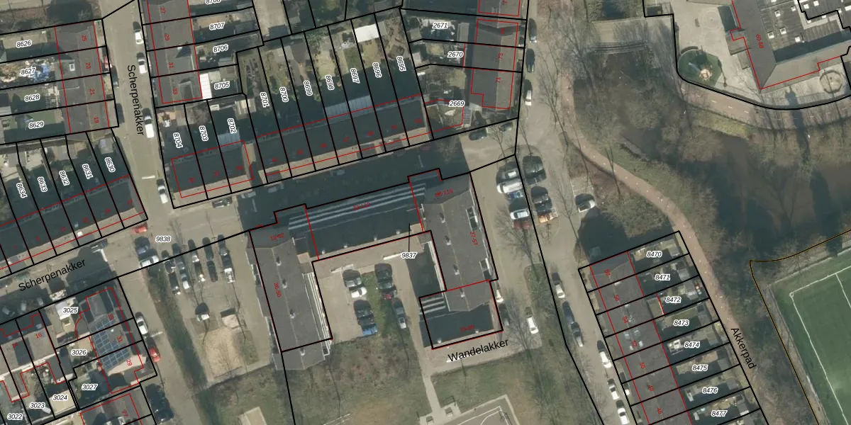 Scherpenakker 114 is gelegen op kadastraal perceel BDA00H9837. Deze kadastrale aanduiding is uniek en wordt gebruikt door het Kadaster om eigendomsrechten en andere zakelijke rechten vast te leggen. Het perceel maakt onderdeel uit van de kadastrale gemeente Breda.