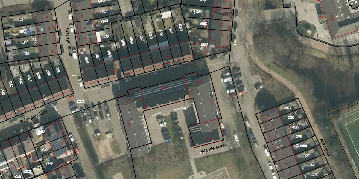 Scherpenakker 98 is gelegen op kadastraal perceel BDA00H9837. Deze kadastrale aanduiding is uniek en wordt gebruikt door het Kadaster om eigendomsrechten en andere zakelijke rechten vast te leggen. Het perceel maakt onderdeel uit van de kadastrale gemeente Breda.