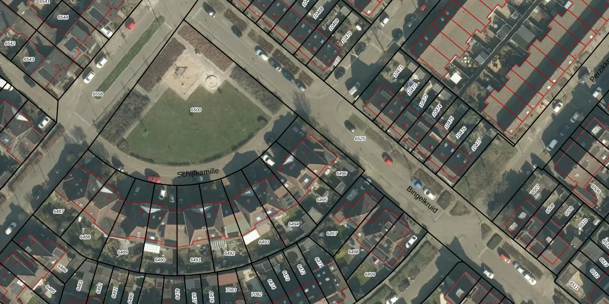 Schijfkamille 1 is gelegen op kadastraal perceel BDA00H6496. Deze kadastrale aanduiding is uniek en wordt gebruikt door het Kadaster om eigendomsrechten en andere zakelijke rechten vast te leggen. Het perceel maakt onderdeel uit van de kadastrale gemeente Breda.