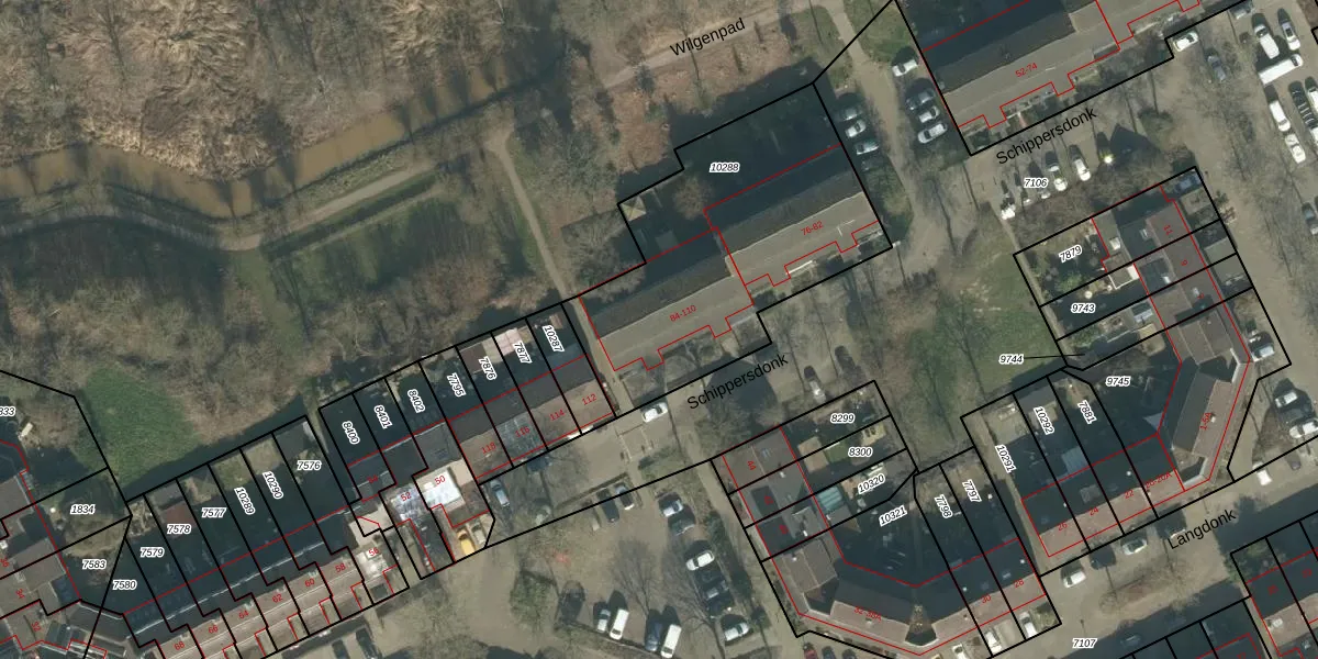 Schippersdonk 102 is gelegen op kadastraal perceel BDA00H10288. Deze kadastrale aanduiding is uniek en wordt gebruikt door het Kadaster om eigendomsrechten en andere zakelijke rechten vast te leggen. Het perceel maakt onderdeel uit van de kadastrale gemeente Breda.